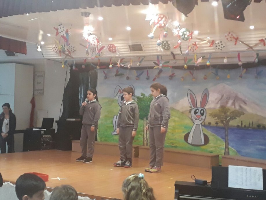 Եշիլգիւղի Հայոց Վարժարանի սաները Զատկի նախօրեակին, Աւագ Երեքշաբթի օր համեստ հանդէսով մը դիմաւորեցին Սուրբ Զատիկը: Նախ վարժարանի ընթացաւարտ դասարանի սաները , իբր աւանդութիւն միասնաբար ներկեցին Զատկի կարմիր հաւկիթները եւ առաջին հաւկթամարտը ընելով յուզումնալից ու հաճելի պահեր ապրեցան: Իսկ յետոյ վարժարանիս երդիքին տակ տեղի ունեցաւ Սուրբ Զատկի հանդէսը, որու ընթացքին սաները բեմ բարձրանալով պարզեցին Զատկուան իմաստը , տալով նաեւ աւանդութիւններէն օրինակներ, արտասանեցին ու երգչախումբի անդամները ունեցան ելոյթ մը երգելով մանկական երգեր: Այս առթիւ աշակերտներուն բաժնուեցան նաեւ Զատկի հաւկիթներ եւ համեղ չէօրէքներ:
